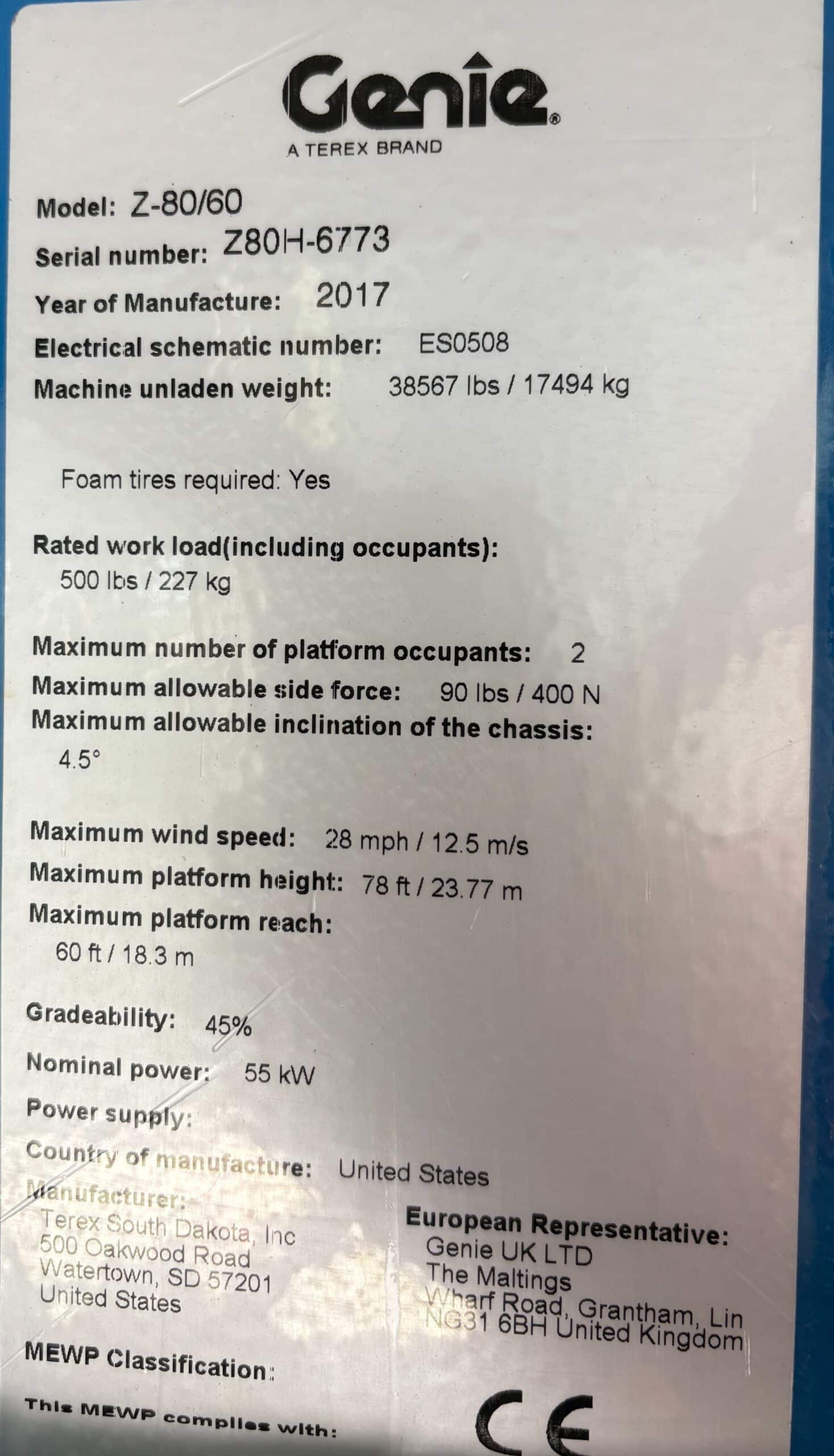 This GENIE Z80/60, is for sale as part of our fleet renewal scheme. Full service history is known. Fleet number 7143
