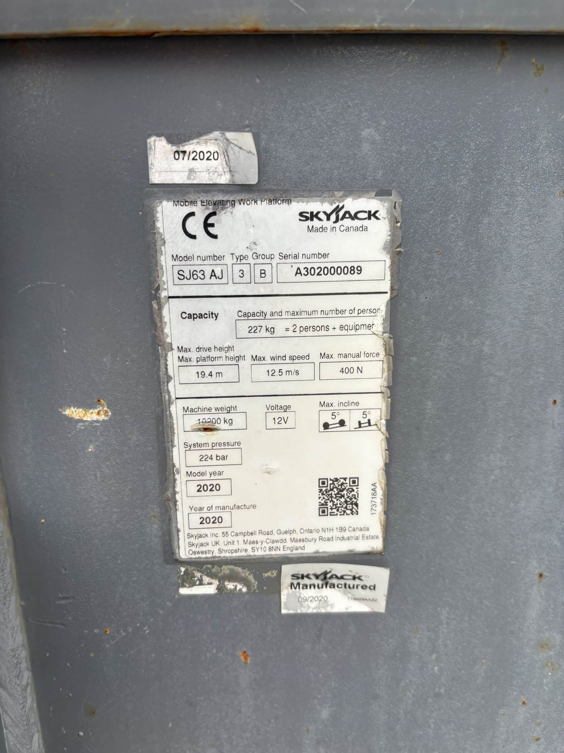 2020, SKYJACK SJ63AJ 60ft Artic Boom *C/W Generator*, Approx. 698 Hours