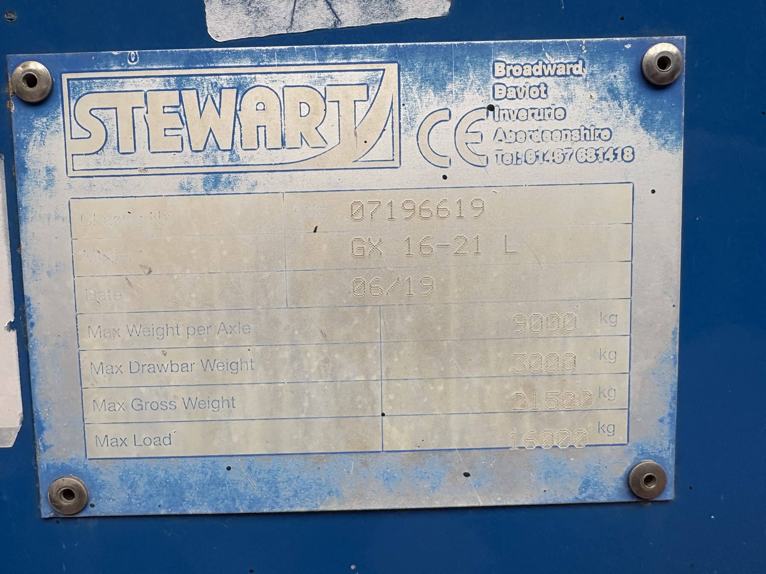 2019, STEWART GX16-21L 16t Grain Trailer *c/w roll sheets*